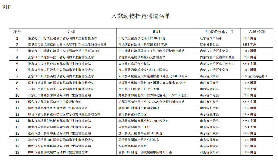附件:入冀动物指定通道名单