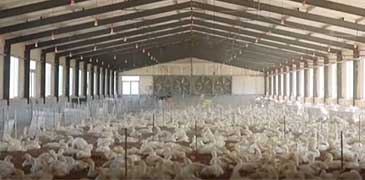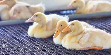 清晨6点,在山东省临沂市沂南县华鸭食品集团的屠宰车间里,机器已经开始运转,一只只樱桃谷肉鸭被吊在钩索上,等待着处理,割鸭掌机规律的“咔嚓”声、传送履带的