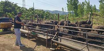 近日,走进河北省唐山市迁西县东荒峪镇桃木峪村的鸵鸟养殖场,只见一只只高大的鸵鸟或扬头悠闲踱步,或低头细心觅食,不时发出低沉有力隆隆声、尖锐刺耳的嘶嘶声,场面十分壮观。