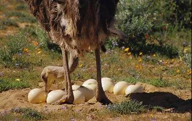 (2)种鸟的管理。挑选种鸟时,应选择精神饱满、反应迅速、体型高大、发育较好的鸟。在人工饲养条件下,公母配比以 1∶2 或 1∶3 较为适宜,注意加强鸵鸟的运动,能够获得较高的受精率。鸵鸟的交配,多在清晨或傍晚进行。雄性强的雄鸟可在 1天交配 6~10 次,母鸟在交配后 1 周左右便开始产蛋。鸵鸟有抱巢性,故在人工饲养条件下,应及时把蛋取走。取蛋时不能直接用手取,为防止污染,应用干净的纸或干净毛巾取蛋,并注意防止公鸟的攻击。母鸟开产第 1 年产蛋约 20 枚,随后产蛋量逐年增加。正常情况下,一只优良的母鸟年产蛋量可达 80 枚以上 。