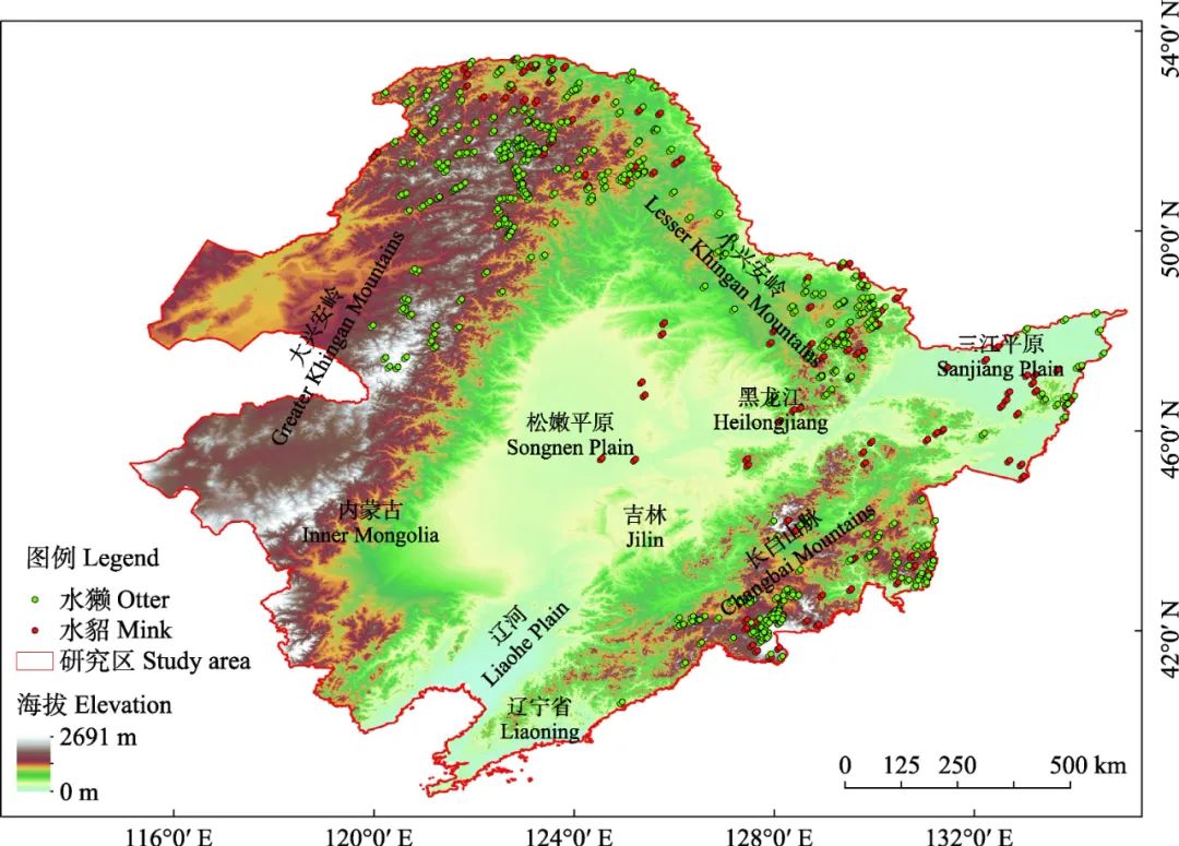 中国东北地区北美水貂和欧亚水獭分布点